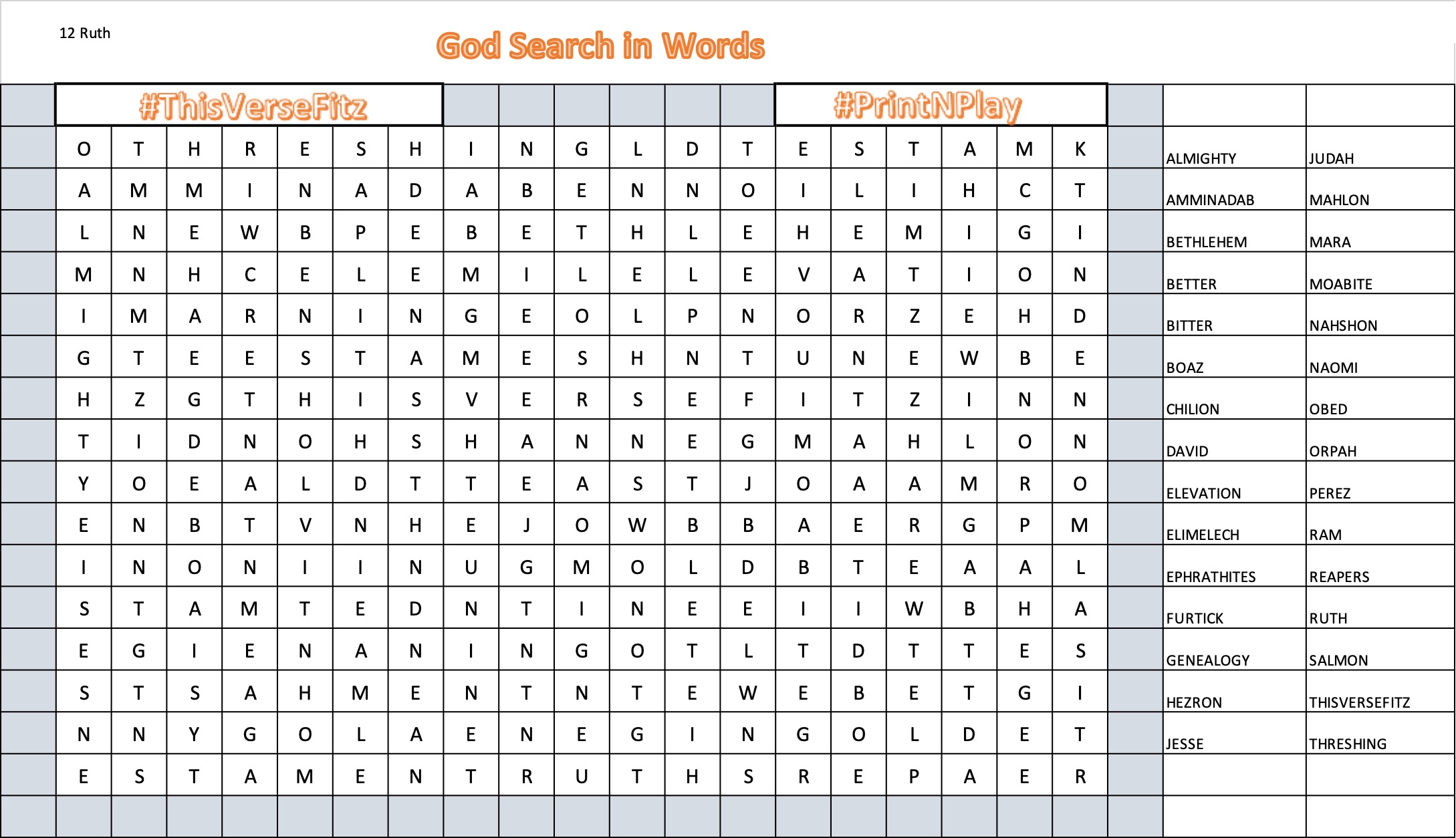 On this twelfth Sunday of 2025, March 23, we enter the book of Ruth. Once again, it is one of the smaller books so we typed it out in its entirety followed by some thoughts.