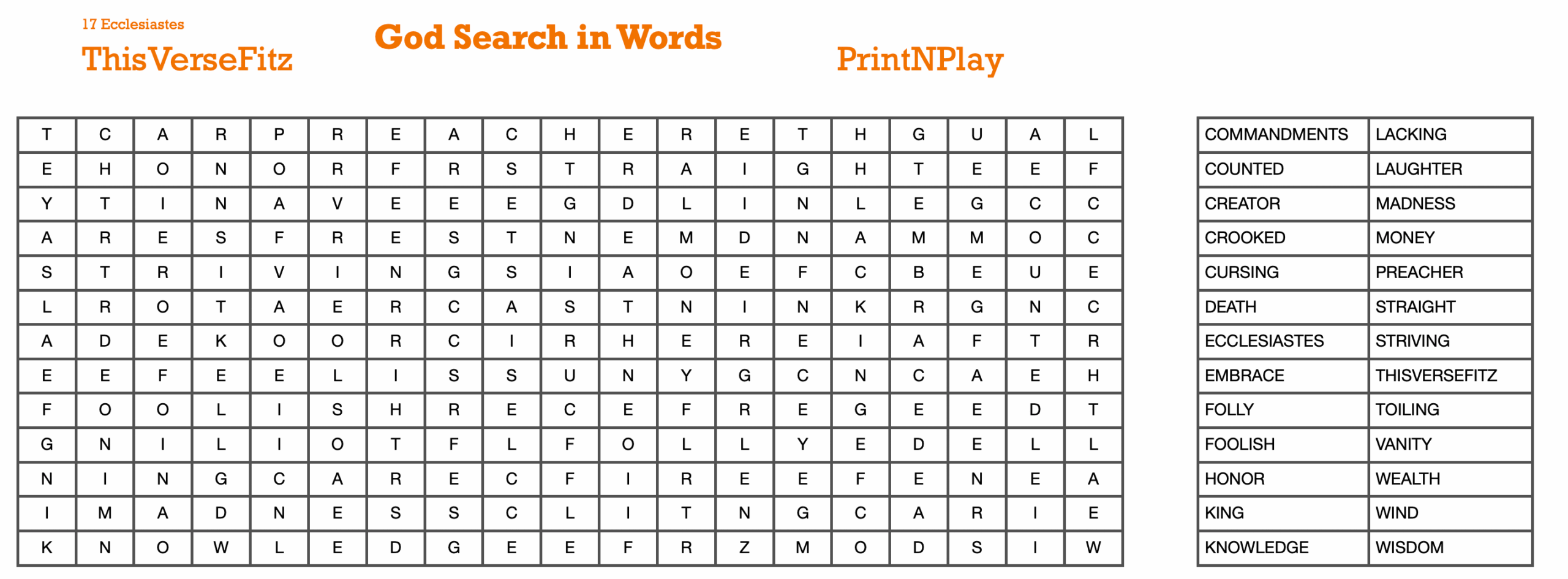 On this seventeenth Sunday of 2025, April 27, we enter the book of Ecclesiastes. Going back to the beginning of this journey, we said we didn’t choose the order in which we’re reading the Bible. We were actually entering First Corinthians and listening to the audio version at the gym. We wanted to make “17” an interesting one because of the significance of “17” and it will be the last “ThisVerseFitz” added to “Multi-MEGA MAGAscenes”. At the gym, the First Corinthians book ended and I was unable to change the audio in the middle of exercising. Ecclesiastes came on next. It had such a powerful and intriguing introduction, I had to let it play out and add it as “17” in place of First Corinthians. First Corinthians will be 18.