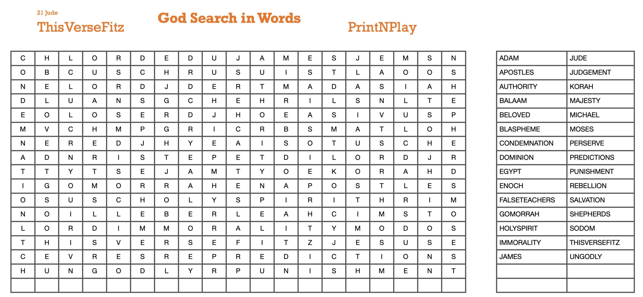 “God Search in Words” works exactly as a normal “Word Search” with a somewhat higher level of difficulty given the Biblical terms. Once all the words are found, the leftover letters repeat a phrase 5.12 times (meaning the phrase is present 5 times and 12 letters of the phrase are left over). We call this the “AfterPuzzle”.