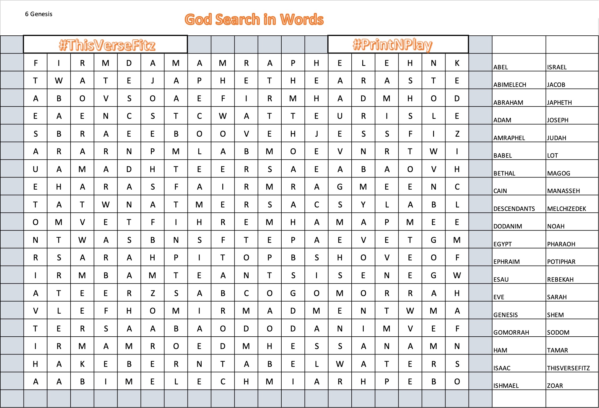 ThisVerseFitz 6 – Genesis 1 – 6, 17 – 18, 22, 25, 39